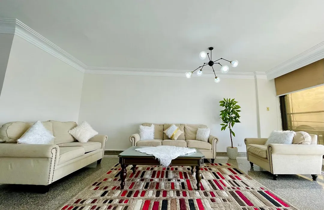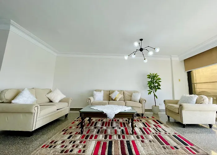 Staying at the spacious 2 Bdrs Nile View Apartment Cairo, guests can relax on a terrace 10 minutes' drive from the Darb 1718 contemporary art center.